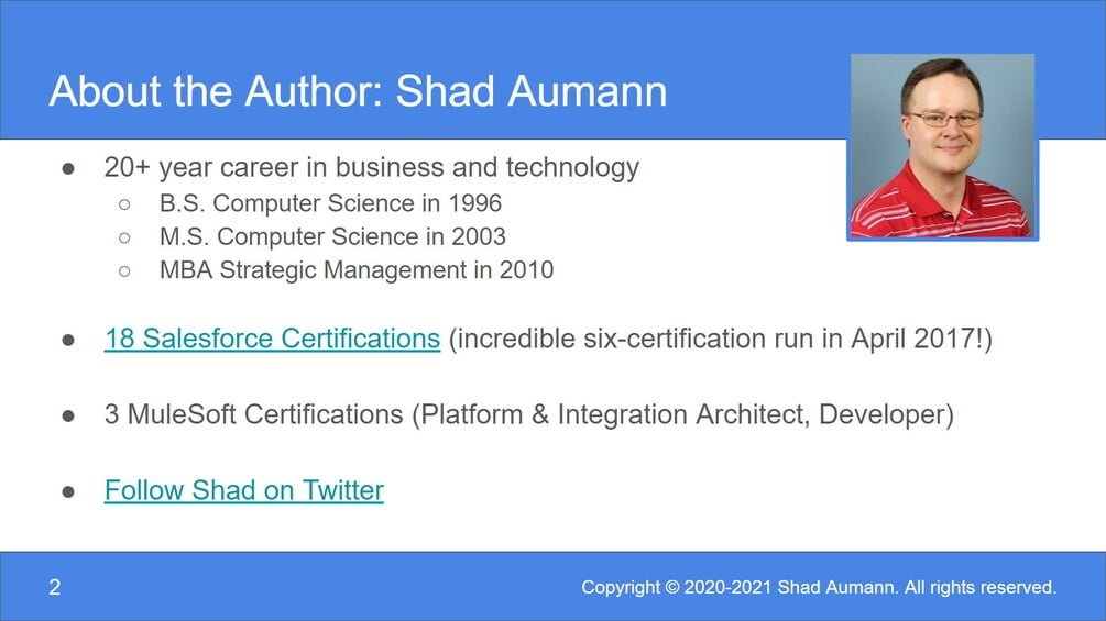 Not only will you be well-prepared to pass every Salesforce certification exam, but this method leverages proven learning techniques that help you retain and apply your hard-earned knowledge on project well into the future. Awesome Admins, Architects, Developers, Project Managers, Business Analysts, Quality Assurance, Sales, UX, Managers, and more will all benefit greatly from this methodology!